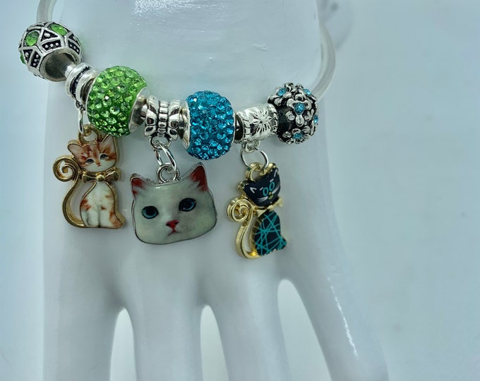 Pink Kitty Charm Beaded Pen & Bracelet Set – Handmade Gift for Cat Lovers