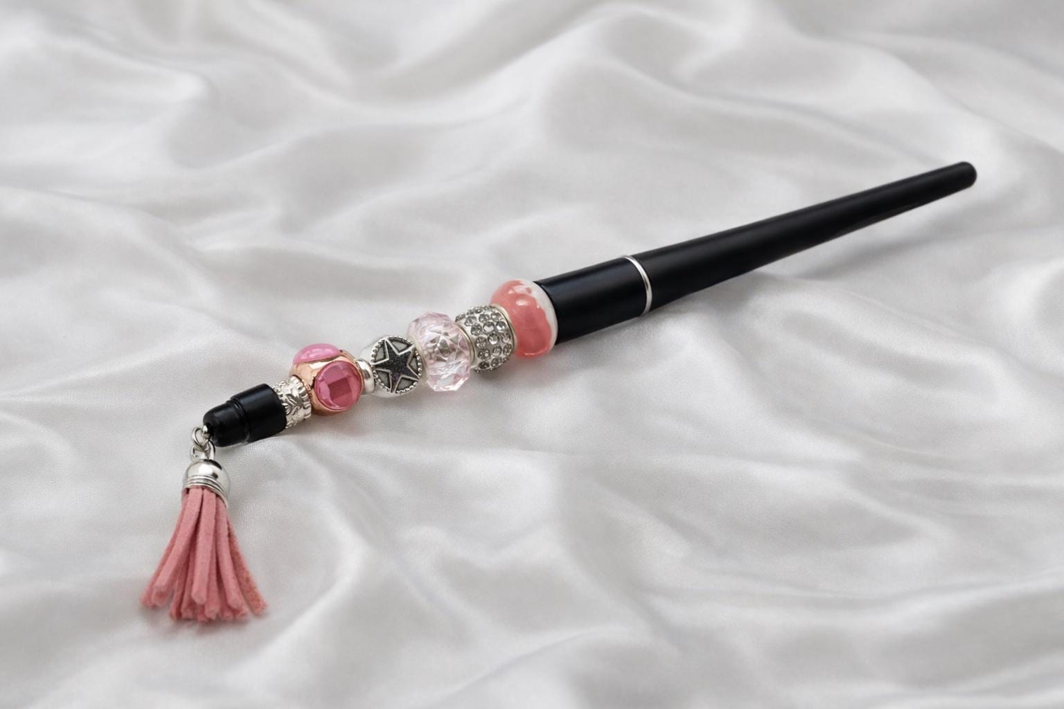 Exquisite beaded and bejeweled writing pen. I choose the finest crystals, rhinestones and assorted glass beads available. Beside have a beautiful smooth writing pen that glides on, I gift you one FREE charm with your pen purchase. I have hundreds of charms in over 30 different categories. I am sure I have a charm to delight you or your gift recipient.