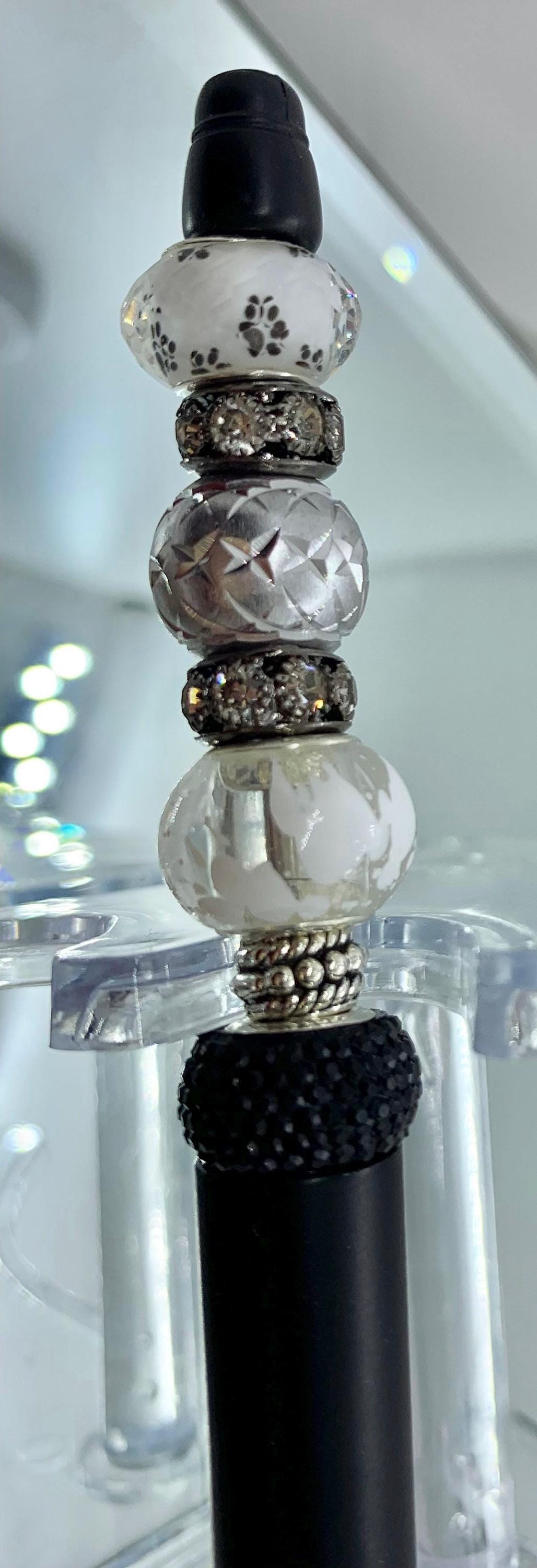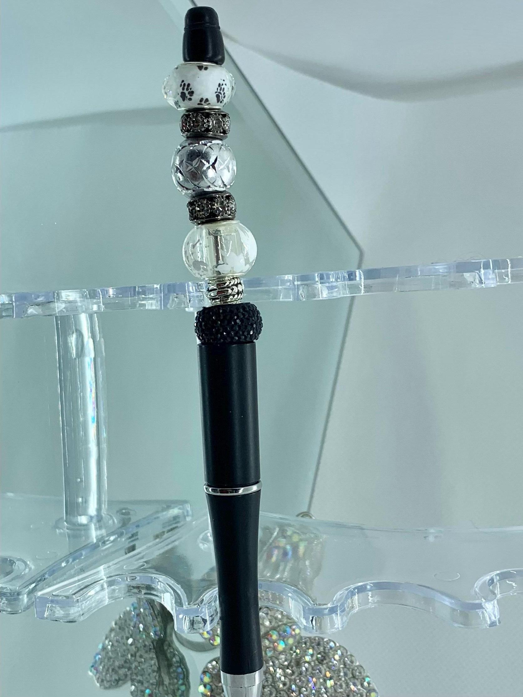 Exquisite beaded and bejeweled writing pen. I choose the finest crystals, rhinestones and assorted glass beads available. Beside have a beautiful smooth writing pen that glides on, I gift you one FREE charm with your pen purchase. I have hundreds of charms in over 30 different categories. I am sure I have a charm to delight you or your gift recipient.