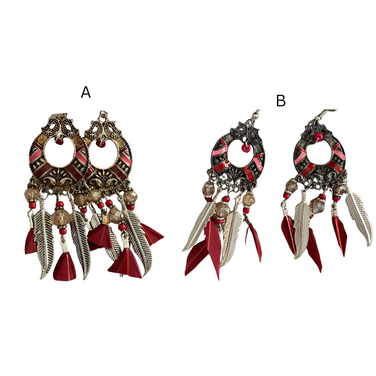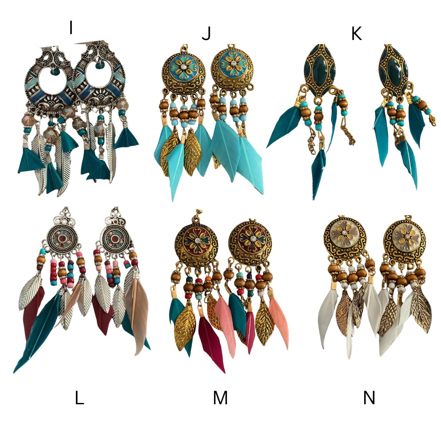 Add a bold and artistic touch to your outfit with these custom-made boho dreamcatcher earrings. Handcrafted with intricate gold-tone filigree, colorful beads, and vibrant feather-like charms, these earrings are a unique fusion of bohemian elegance and playful charm. Earrings colors available: red, white, pink, turquoise, maroo, teal, black, multicolor pastel.
