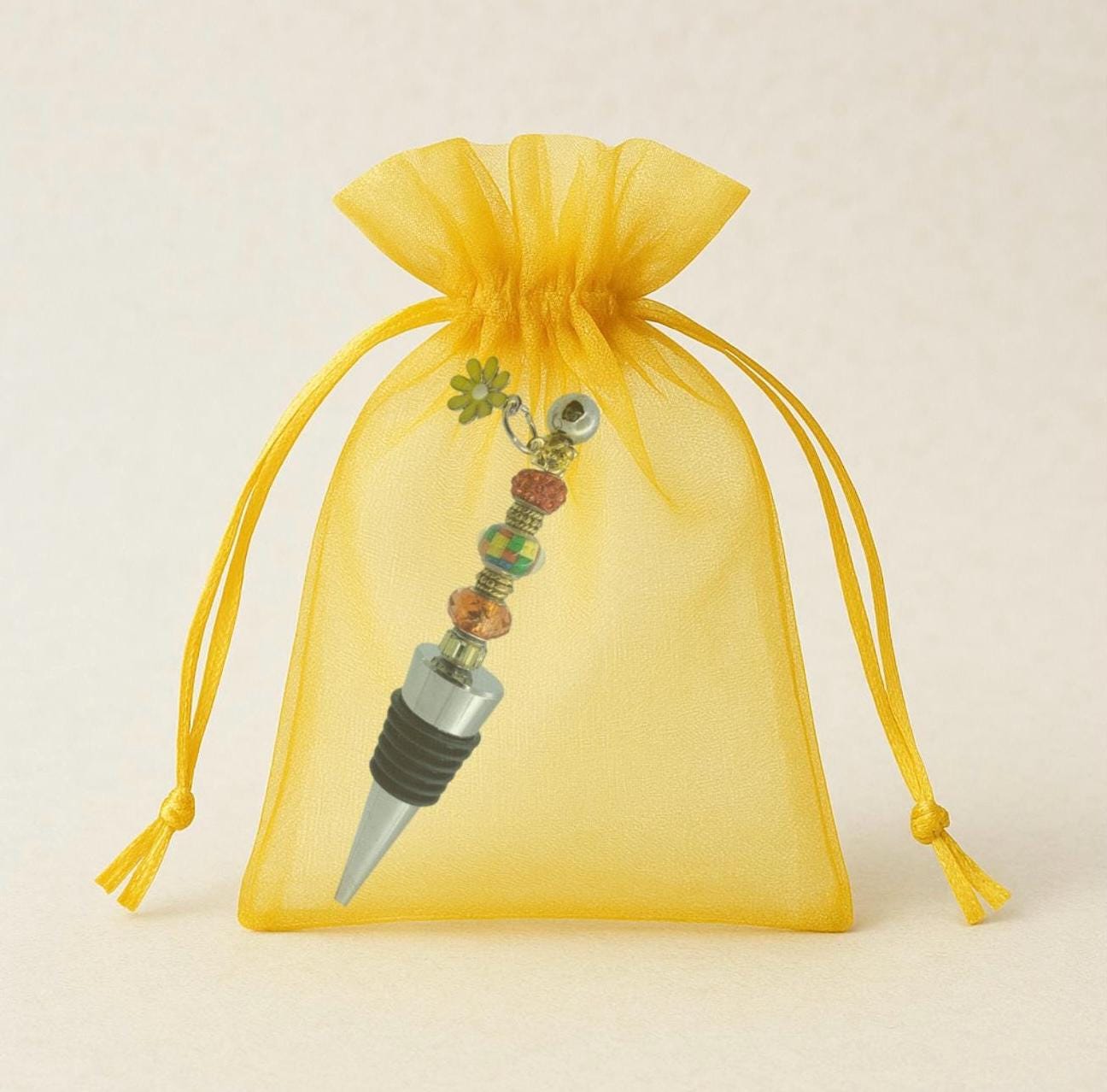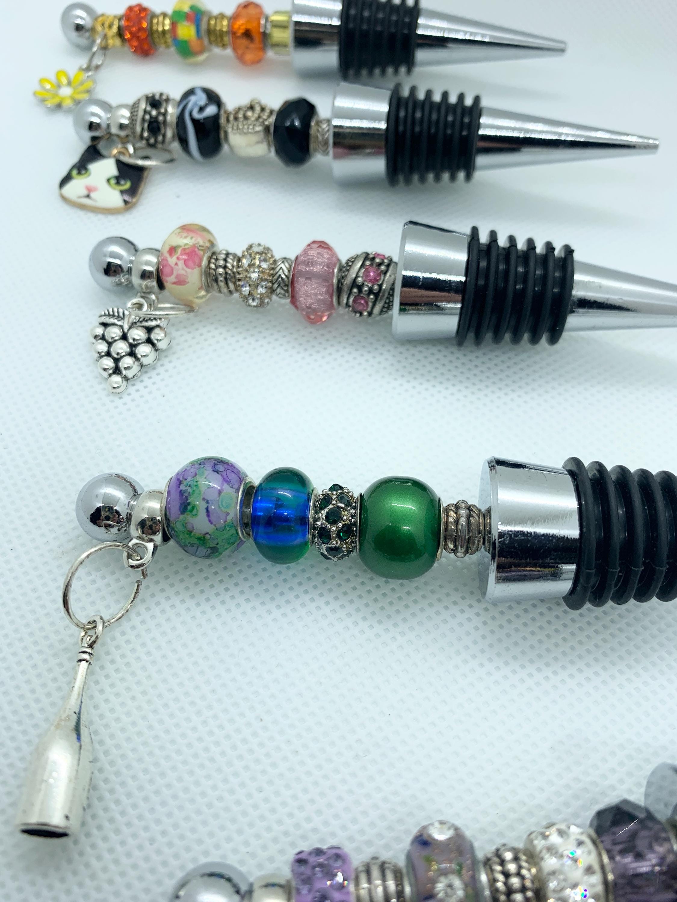 Handcrafted elegance for every poor. Each wine stopper is artfully designed with sparkling crystal beads and premium metal for a touch of sophistication that shines. Perfect for keeping your favorite wines, fresh, and your decor, dazzling. Ideal for hostess gifts, weddings, holidays, or elegant home, entertaining. Care tips: number one, wipe gently with a soft cloth after each use. Avoid soaking or dishwasher cleaning to preserve brilliance. Comes with matching organza draw-string pouch, perfect for gifting.