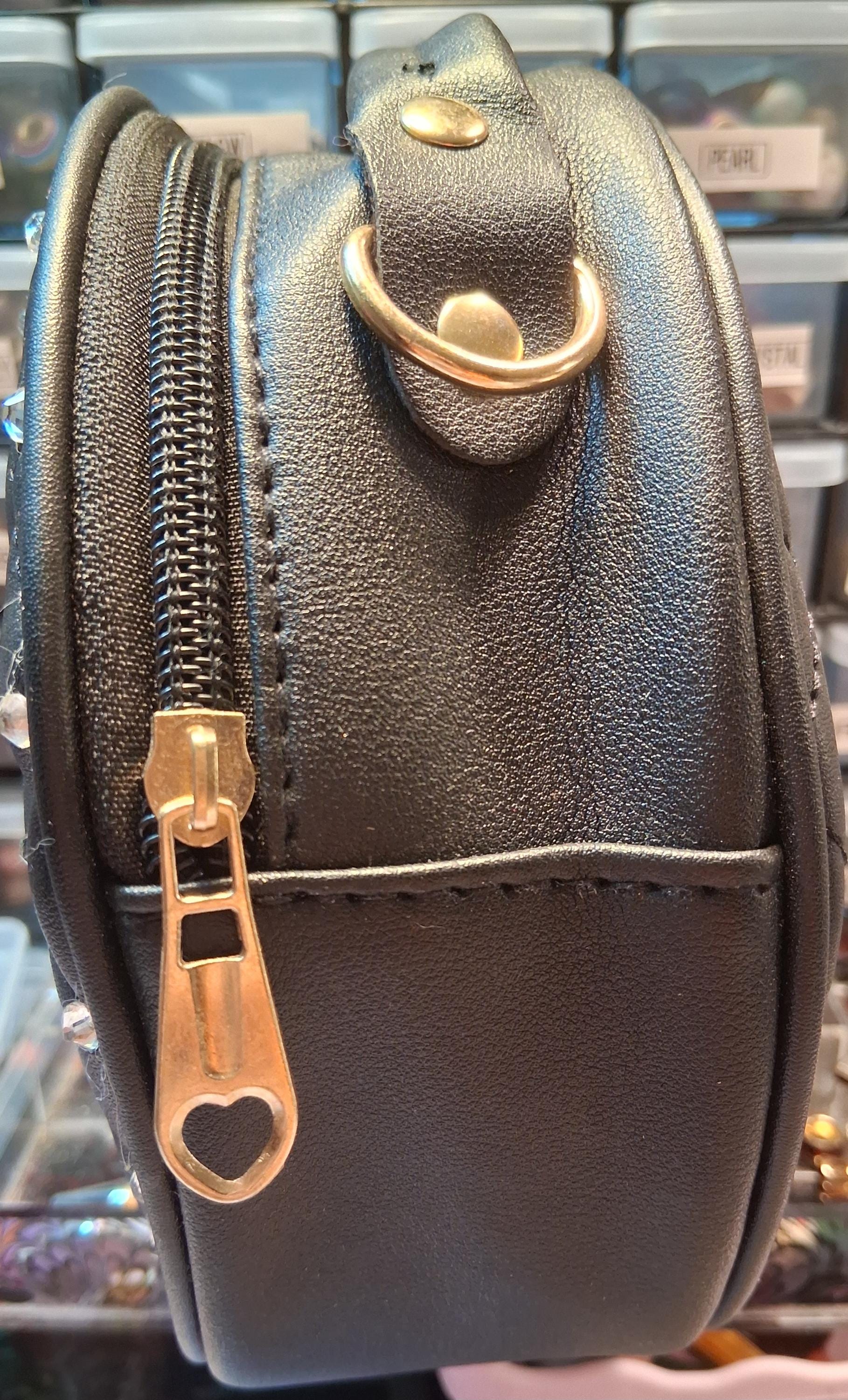 Turn heads with this Elegant Black Quilted rhinestone beaded Handbag, a handmade statement piece that blends sophistication with sparkle. Each bag features soft quilted detailing adorned with aurora rhinestone studs that add a hint of luxury. Inside pocket. A mini packet of extra aurora studs tucked inside.
