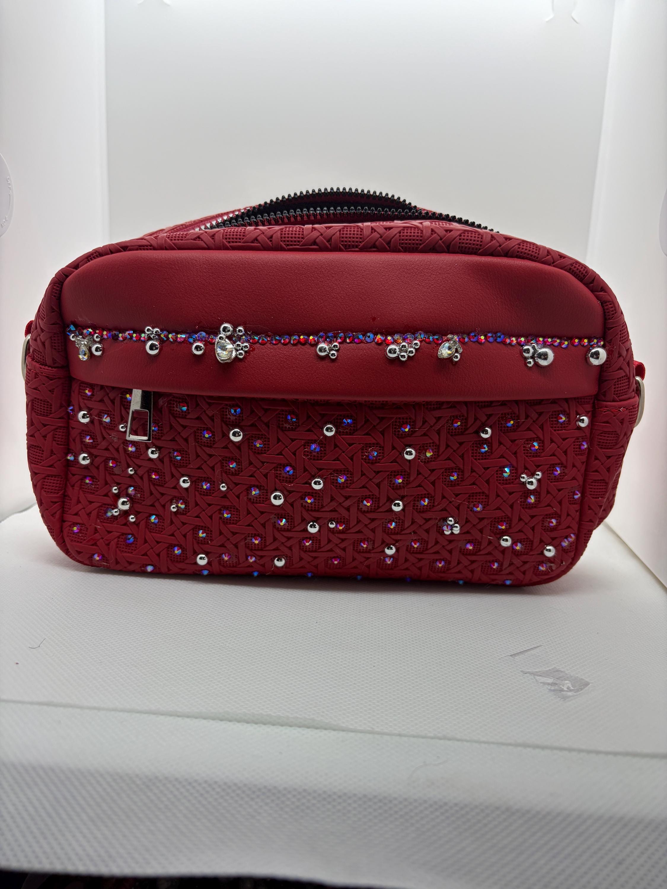 Mini packet of extra rhinestones tucked away inside. Closes by hidded style zipper.